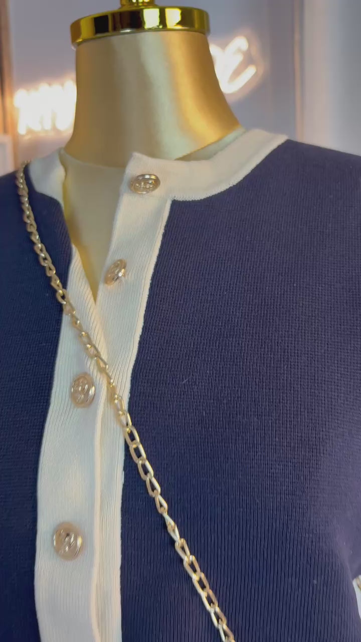 Cet ensemble est composé d'une jupe et un haut avec col rond et manches courtes . Fermeture boutonnée sur le devant
